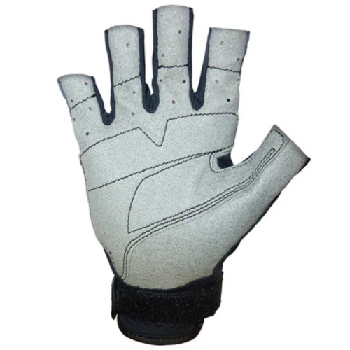 Cutoff finger glove ideal for kayaking, SUP's and Dinghy Sailors  with adjustable hook-and-loop wrist straps for a secure fit. Comfortable, durable overlock seam construction. Soft synthetic suede palms; 4-way stretch fabric back hands.